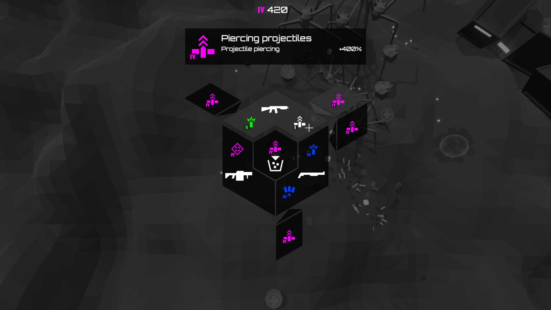 The original idea was to take all the features I liked in existing twin stick shooter games and leave out everything that I felt was unnecessary interruptions to the action. I tried to make an ideal twin stick shooter for myself, a middle-aged gamer with limited time, who enjoys twin stick shooters but can't keep up with the most hectic bullet hell games, and wants to enjoy more strategic shooting action without constant panic and struggle to survive.
